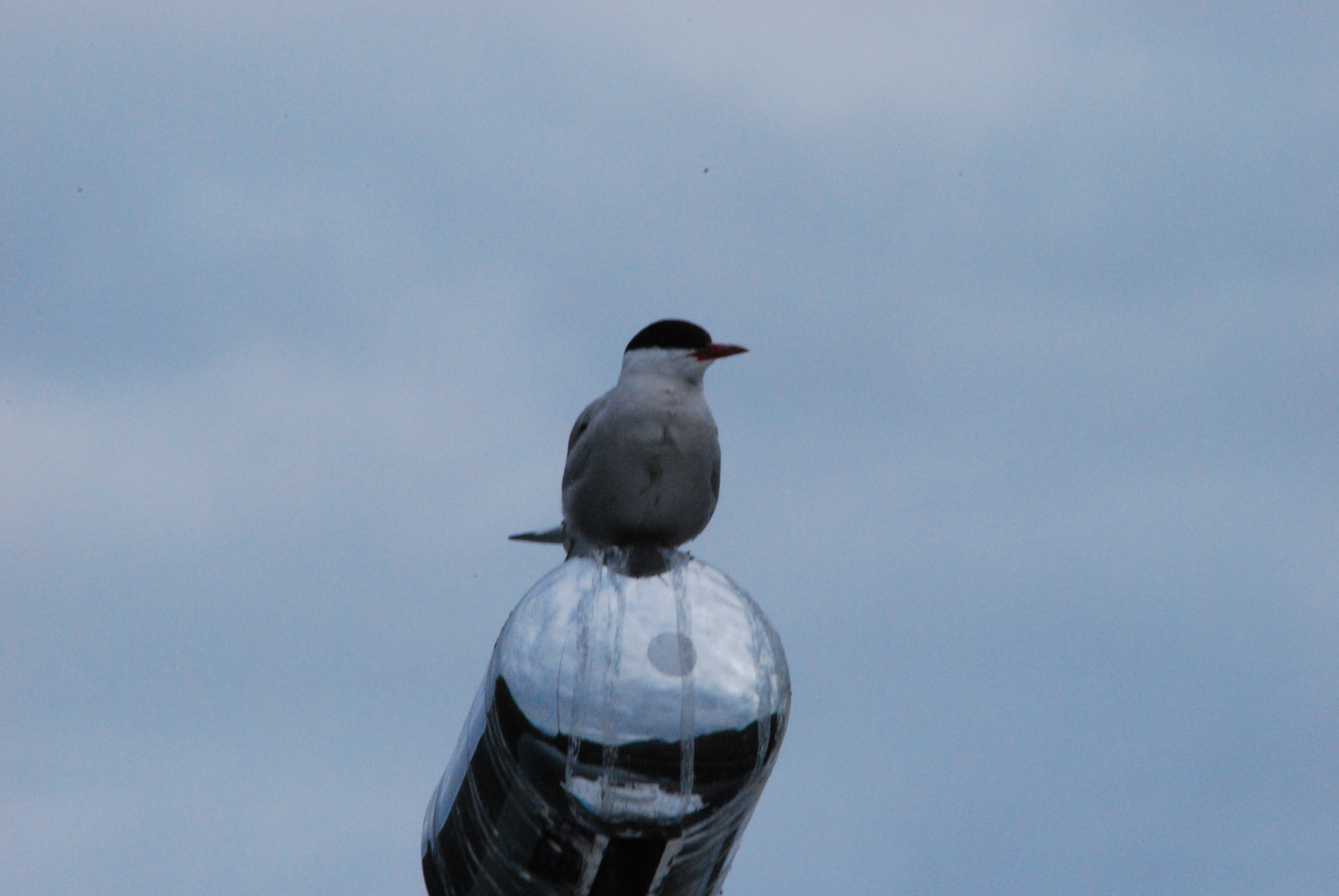 Less than three months after their arrival, by about mid-August here, terns leave their breeding areas and start their southward migration. It is interesting to watch the interaction between adults and their chicks when the young terns are just learning to fly. Because their webbed feet are small, terns don’t swim well. They hover over water until they spot a small fish and then dive into the water to catch it, but they don’t sit on the water, so young terns must learn to land on solid surfaces, which is tricky. Once a young tern lands, sometimes it is hesitant to take off again, and the adults will dive-bomb it until they force it to leave its safe perch. This behavior may seem harsh to an observer, but the adults must prepare the young Arctic tern for a 12,000-mile flight in the very near future.