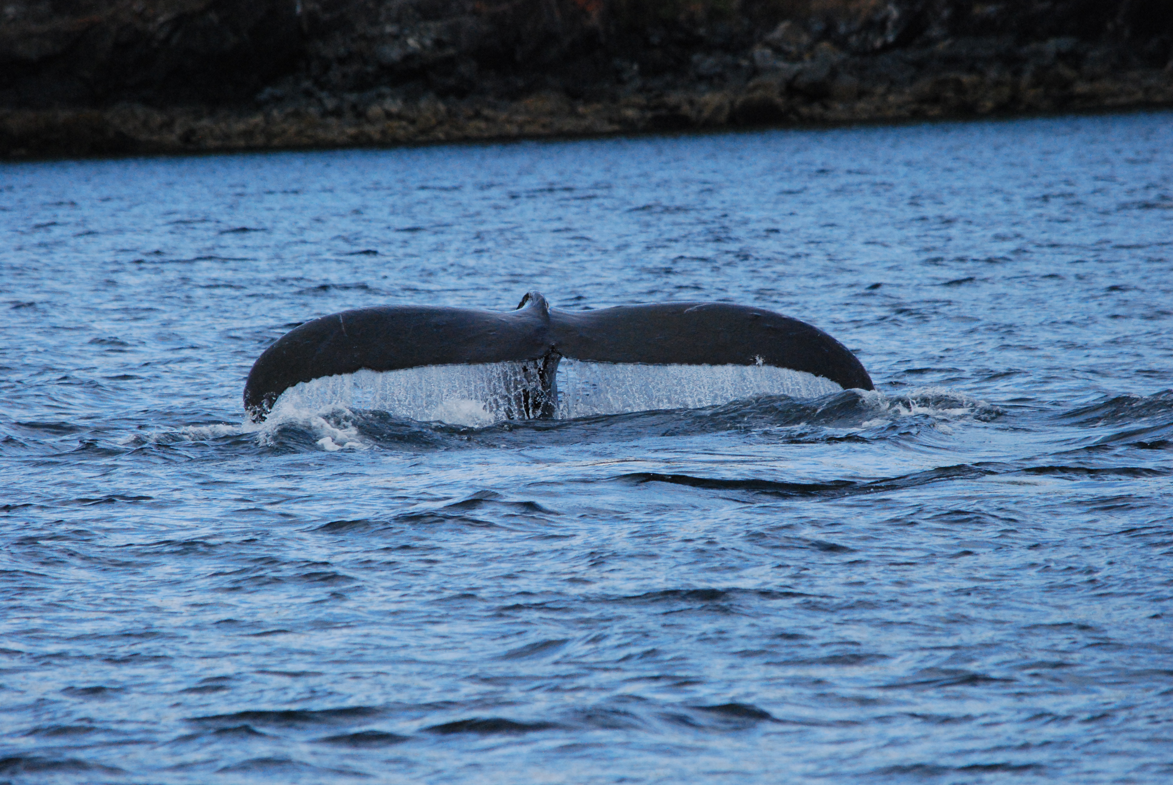 Fluking: Some species commonly raise their tail flukes in the air before a deep dive, and others do not. A humpback often raises its tail, while a fin whale seldom does. Why? I don’t know. Humpbacks are more acrobatic than fin whales, and this may have something to do with it.